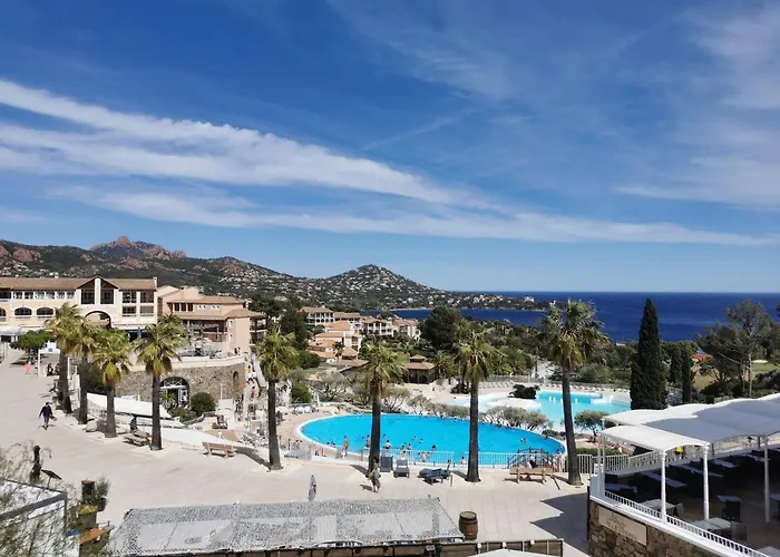 The 27 m^2 Appartement Cap Esterel Climatise Vue Mer is approximately 5 minutes' drive from Valescure Golf and provides spa facilities such as a treatment room, a Jacuzzi, and a sauna. This 1-bedroom apartment entices guests with a sauna, ensuring ultimate comfort by the swimming pool.